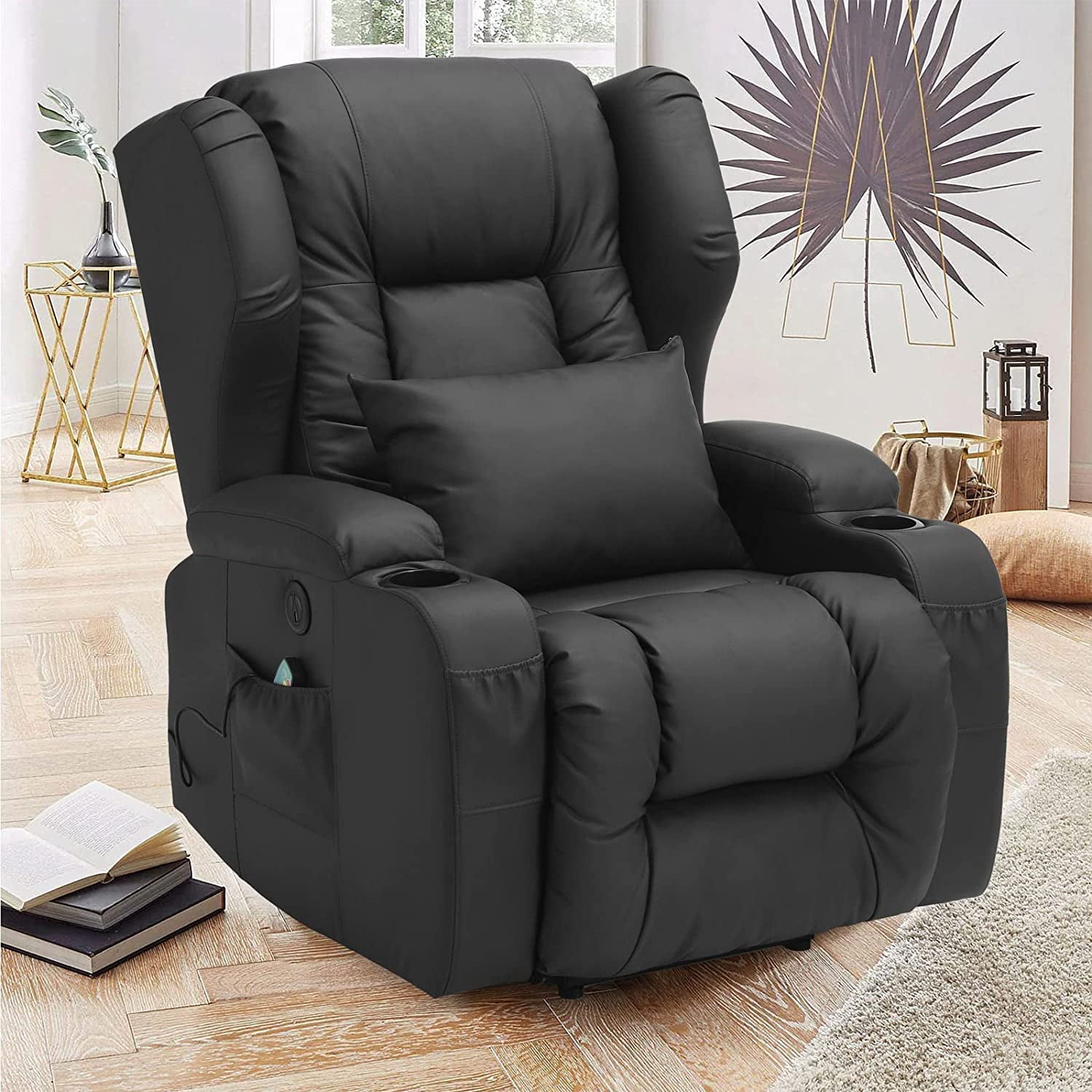 Amazon Com Jummico Power Lift Recliner Chair Pu Leather Lift Chair For Elderly Massage And Heating Ergonomic Living Room Recliner Classic Single Sofa With 2 Cup Holders Side Pockets Home Theater Seat Black